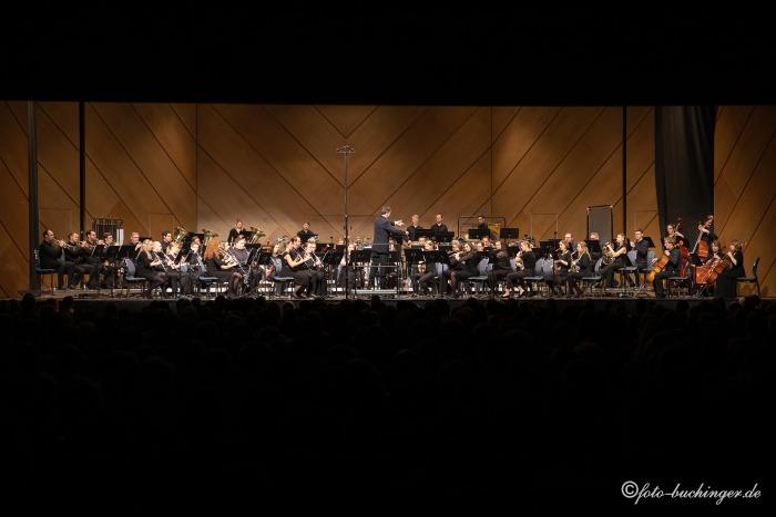 Unter der künstlerischen Gesamtleitung des dynamischen Dirigenten Ekkehard Hauenstein stand wie gewohnt eine vielfältige Auswahl an Werken aus dem Genre der Film- und Musicalmusik im Mittelpunkt des Konzertabends. Die rund 60 Musikerinnen und Musiker eröffneten mit der mitreißenden Fanfare aus „Kings Row”. Das US-amerikanische Filmdrama von 1942 dürfte hierzulande weitestgehend unbekannt sein. Die dazugehörige Filmmusik des Österreichers Erich Wolfgang Korngold zeigt jedoch nicht zufällig musikalische Ähnlichkeiten zum 35 Jahre später erschienenen Filmepos „Star Wars”.